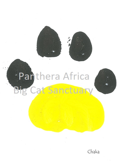 Download this beautiful print of Chaka’s paw, our prince of the pride. Suitable for printing on canvas or print quality paper. The paw prints are made with water-soluble non-toxic paints while the big cats are under sedation for their routine veterinary check-ups.
